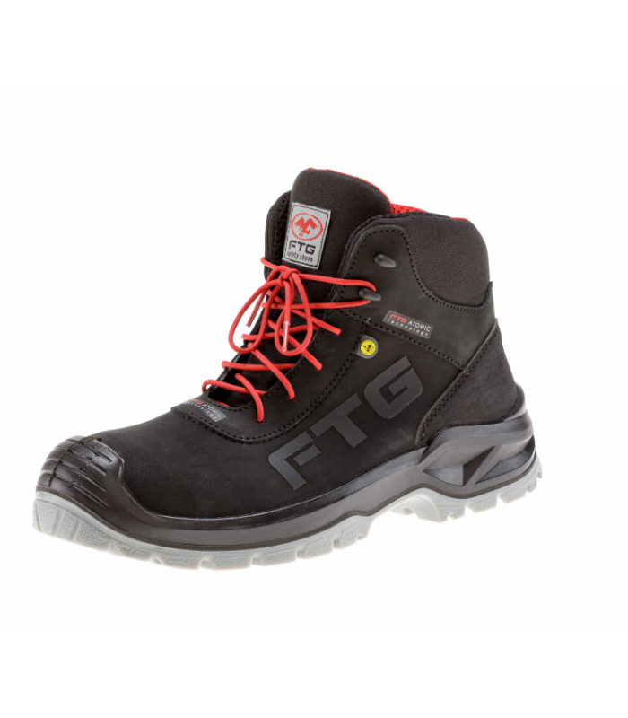 Natūralios TOP Nabuko odos auliniai darbo batai Gladiator. Papildomai apsaugai poliuretano sluoksniu užlieta bato noselė. Prakaitavimą mažina ir užtikrina drėgmės bei oro cirkuliaciją – 3D pamušalas (100% poliesteris). Vidpadis išimamas, anatomiškas, plaunamas bei antibakterinis FTG ATOMIC. Gaminamas naudojant ATOMIC technologiją, kuri suteikia maksimalų energijos paskirstymą ir komfortą dėvint. Avalynė su papildoma apsauga nuo elektrostatinės iškrovos (ESD), be metalinių dalių. Padas iš dviejų sluoksnių poliuretano suteikia puikų lengvumą ir lankstumą. Šių batų padas atsparus naftos produktams (tepalams, aliejams ir t.t.), slydimui (SRC), sugeria energiją kulno srityje. Savaime išsivalantis pado raštas.