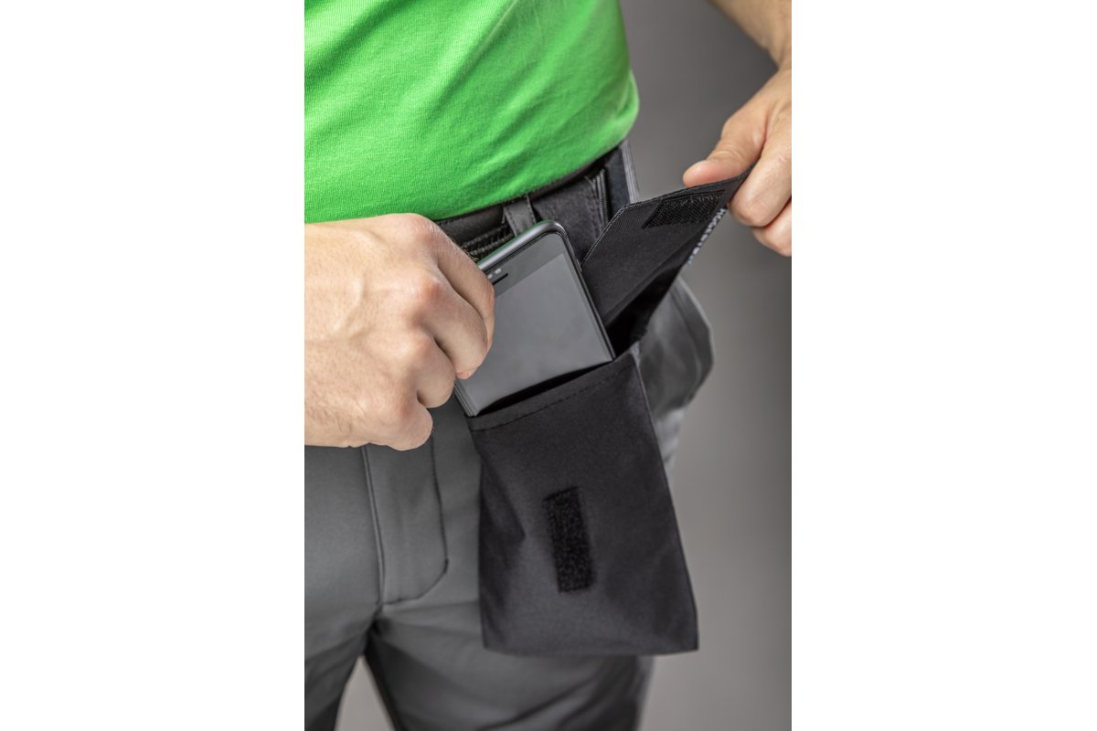 Telefono kišenė DALKEN yra pagaminta iš tvirtos Oxford 300D medžiagos. Ji gali būti naudojama, kaip kišenė telefonui ar maitinimo blokui nešiotis. Kišenė kabinasi ant bet kokio diržo, todėl gali būti naudojama abiejose pusėse ir yra užsegama tvirtu Velcro lipduku, todėl neleidžia iškristi dėklo turiniui. Dėl universalaus dydžio ir praktiškos juodos spalvos ji tinkama, bet kurio profesionalo darbui.