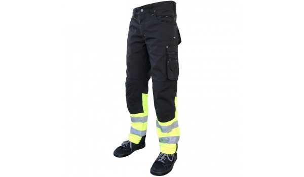 Darbinės kelnės pasiūtos iš itin tvirto drobinio pynimo Canvas audinio, kuris nesitraukia ir yra atsparus dėvėjimuisi. Tai burių gamybai naudojama medžiaga, kurioje yra apvienytas medvilnės patogumas ir poliesterio tvirtumas, atsparumas ir geros skalbimo savybės. Šviesą atspindinčios atšvaitinės detalės kelnių klešnių dalyje padidina matomumą tamsiuoju paros metu ir užtikrina saugų darbą. Išskirtinio tvirtumo suteikia visų pagrindinių siūlių prasiuvimas triguba užlenkta siūle, kuri neleidžia kelnėms greitai suplyšti ar pradėti dilti. Patogumo dėvėjimui suteikia du laikikliai plaktukams liemens srityje ir funkcionalios kišenės: speciali kišenė telefonui, kišenė sėdynės dalyje, specializuota kišenė peiliui ir užsegama kišenė ant dešinės klešnės su įmautėmis rašikliams. Visos kišenės papildomai sutvirtintos sutankinta siūle.