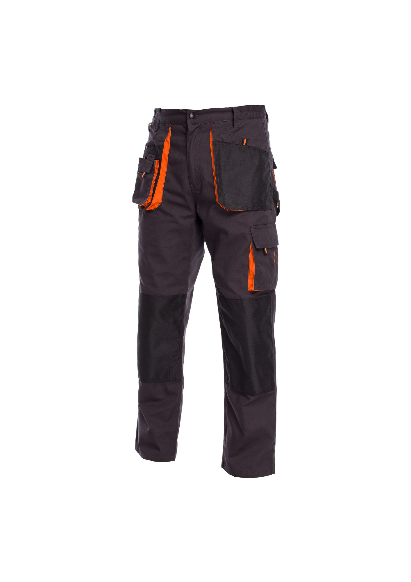 Darbinės kelnės yra pagamintos iš poliesterio – medvilninio audinio, kurio svoris 260 g / m². Turi 9 funkcines kišenes, įskaitant dvigubas priekines kišenes su papildoma išmaniojo telefono kišene, galines kišenes su „Velcro“ atvartu bei 2 nedideles kišenes pieštukui ir liniuotei susidėti. Labiausiai dylančios vietos sutvirtintos ilgaamžiu, atspariu trinčiai, plyšimams ir drėgmei OXFORD audiniu. Funkcionalumo suteikia kelių srityje prisiūtos kišenės skirtos antkeliams įsikišti. Kelnės pasiūtos iš trigubų siūlių, todėl užtikrina kokybišką dėvėjimą. Apsaugo nuo purvo ir minimalaus trinties poveikio, todėl puikiai tinkamas: autoservisuose, lentpjūvėse, ūkyje, nes audinys taip pat nesurenka dulkių ir gerai skalbiasi.