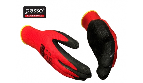 Megztos nailoninės darbo pirštinės Pesso Red Star, aplietos lateksu. Gerai priglunda prie rankos, lanksčios, puikiai sukimba su slidžiais paviršiais, lengva paimti net labai smulkius daiktus. Pirštinių rankogalis iš megzto tampraus nailono. Puikiai tinka dirbti su konstrukcijomis ir įvairiomis priemonėmis statybose bei įvairiuose amatuose.