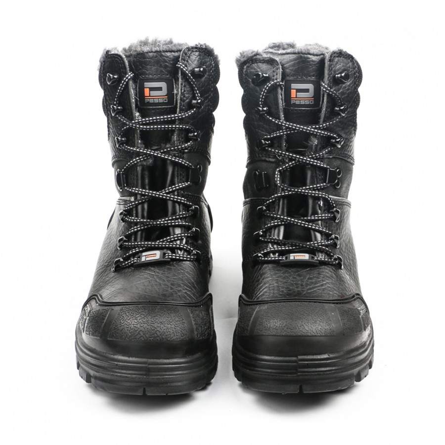 Šilti apsauginiai darbo batai Pesso POLARIS S3 SRC Plastic/Kevlar, pagaminti iš natūralios grublėtos Barton odos (1.8-2.0mm storio) kuri yra impregnuota ir atspari dilimui. Batų pašiltinimui naudojamas sintetinės ir natūralios vilnos mišinys (50% natūrali vilna / 50% sintetinė vilna). Pirštų apsauga su apsaugine plastikine nosele, papildomai užlieta kojų pirštų sritis. Batų vidpadis anatominis, padengtas tekstilės sluoksniu, užtikrinančiu puikią pėdos ventiliaciją. Yra papildoma apsauga užkulnio srityje, paminkštinta apyčiurnio sritis. Padas su smūgio absorbacija, gaminamas iš dvigubo tankio PU / PU poliuretano, antistatinis, neslystantis, atsparus riebalams, alyvai, deformacijoms ir dilimui. Storas, patvarus, tačiau lankstus bei gerai izoliuoja šaltį nuo grunto. Pado apsaugai naudojamas neperduriamas kompozicinių medžiagų įdėklas.