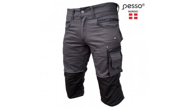 Darbo bridžai Pesso pagaminti iš tvirto medvilninio STRETCH audinio su elastanu. Audinys susideda iš 2 % elastano ir 98 % medvilnės. Lengvi ir tamprus, nevaržantį judesių bridžai zemaiuskartu išlaikant audinio atsparumą plyšimui. Kelio sritis sustiprinta stipriu RIPSTOP audiniu. Papildomai galima įdėti kelių paminkštinimus.