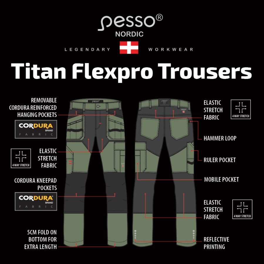 Darbo kelnės Pesso TITAN Flexpro 125, žalios – chaki