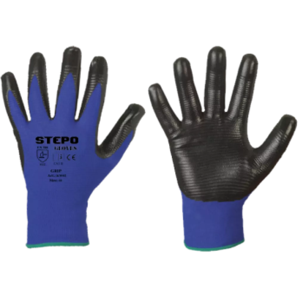 Darbo pirštinės STEPO GRIP aplietos storu banguotu nitrilu, užtikrinančiu gerą sukibimą su įvairiais paviršiais. Puikiai priglunda prie rankos, suteikiant komfortą ir tikslumą darbo metu. STEPO GRIP pirštinės yra puikus pasirinkimas, kai reikalingas patikimas sukibimas, komfortas ir apsauga. Banguotas nitrilo sluoksnis užtikrina, kad pirštinės efektyviai susidoros su įvairiais darbais, reikalaujančiais gero sukibimo ir mechaninio atsparumo.