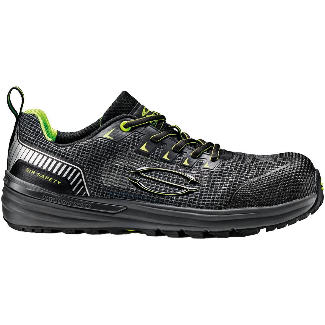 Itališki darbo pusbačiai SIR SAFETY SYSTEM su pažangiu vientisu tinklelio ir poliuretano viršumi, itin kvėpuojantys. BE METALO. Stiklo pluošto apsauginė noselė ir kompozitinis PS tipo pado įdėklas. S1PS. Padas pagamintas iš itin išplėstos EVA medžiagos, pasižymi dideliu smūgio sugėrimu, dėl to batai yra lankstesni ir lengvesni. Išorinis padas pagamintas iš nitrilo gumos, užtikrinantis puikų sukibimą tiek su sausais, tiek su šlapiais paviršiais. SR slydimui atsparūs darbo batai. Vidpadis pagamintas iš dviejų komponentų medžiagos su poliuretano putų ir atminties PU kevalu, kurio storis kinta: 4 mm priekyje ir 9 mm kulno srityje. Darbo batai pasižymi geromis smūgio sugėrimo savybėmis. Antistatiniai. Integruotas DRY PLUS pamušalas pagamintas iš poliesterio, pasižymi dideliu drėgmės sugėrimumu ir išgarinimu.