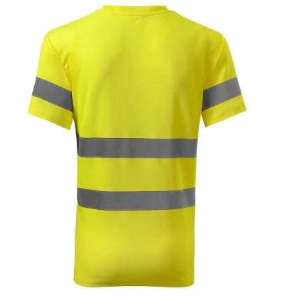 Hi-Vis marškinėliai su trumpomis rankovėmis yra pagaminti iš medvilnės ir poliesterio t.y. išorinė pusė pagaminta iš poliesterio, o vidinė padengta medvilne, todėl jausitės patogiai ir mažiau prakaituosite. Marškinėliai tai pat yra ryškios geltonos spalvos, turi sertifikuotas šviesą atspindinčias 3M juostas, lengvi, nesitraukiantys ir greitai išdžiūsta.