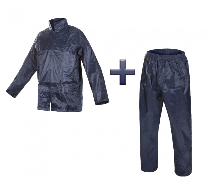 Kostiumas nuo lietaus yra pagamintas iš nailono audinio aplietu PVC danga. Susideda iš dviejų dalių: striukė ir kelnės. Striukė užsisega užtrauktuku, šonuose turi 2 kišenes bei nusegamą gobtuvą. Siūlės yra užlydytos bei nepraleidžia vandens. Be to, nugaroje turi didelę ventiliuojamą angą, kuri yra uždengta. Kelnės ties liemeniu yra reguliuojamos su guma, todėl puikiai prisitaiko prie kūno. Rankogaliai ir kelnių apačia taip pat yra su elastine guma. Šis kostiumas puikiai tinkamas: tiek grybauti, tiek dirbti statybose ir pan.