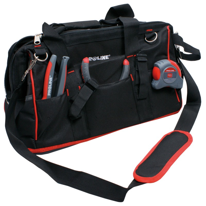 Krepšys įrankiams Proline yra praktiškas pasirinkimas kam reikia mobilumu ir patogumo. Pagaminta iš atsparaus lietui audinio. Guminis pagrindas atsparus mechaniniams pažeidimams net esant žemoms temperatūroje. Minkštas, patogus – tvirtas reguliuojamas diržas, su metalinėmis sagtimis.