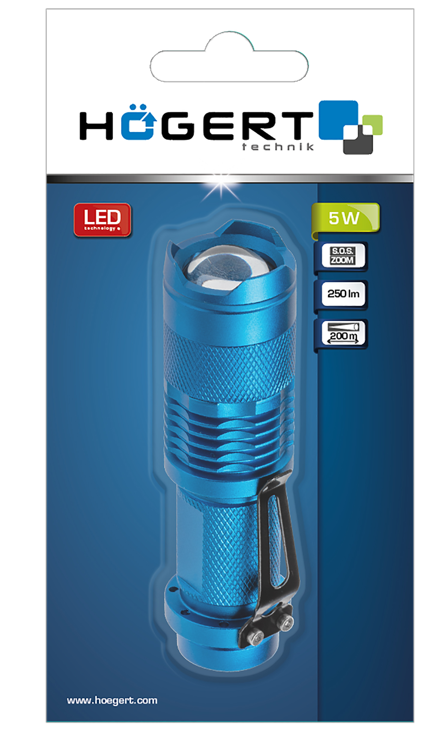 LED kišeninis žibintuvėlis 5 W, 250lm, IP20.200m, Hogert