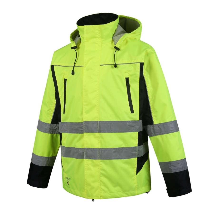 Ryškaus matomumo, signalinė striukė PESSO DENVER yra neperpučiama, nepralaidi vandeniui, atstumianti purvą, tačiau „kvėpuojanti”. Dvisluosknis audinys garantuoja vandens nepralaidumą bei oro ir drėgmės cirkuliaciją. Mesh porėto audinio lengvas pamušalas užtikrina gerą oro cirkuliaciją. Platus nusegamas gobtuvas su virvelėmis, paaukštinta apykaklė su kaklo apsauga, vandeniui atsparus užtrauktukas su papildoma apsauga nuo vėjo, užsegama spaudėmis užtikrina maksimalų komfortą. Užlydytos, patikimos ir tvirtos dvigubos siūlės užtikrina nepralaidumą vandeniui. Patogios šoninės kišenės bei krūtinės srityje yra užsegamos užtrauktukais. Rankogaliai reguliuojasi lipdukais, striukė turi 5 cm atšvaitines juostas.