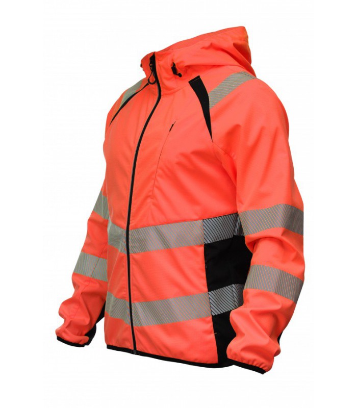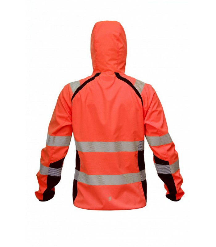 Softshell audinio džemperis yra lengvas, minkštas ir gerai kvėpuojantis. Puikiai apsaugo nuo vėjo, trumpalaikio lietaus. Su kapišonu. Turi dvi talpias kišenes juosmens srityje ir vieną kišenę ant krūtinės, kurios yra patogiai užsegamos užtrauktuku. Vidinėje pusėje esantis tinkliukas užtikrina gerą oro cirkuliaciją. Džemepris yra su reglano rankovėmis. Geram matomumui juosmens srityje bei ant pečių yra 5 cm klijuotos segmentinės atšvaito juostos. Džemperis turi elastinius rankogalius ir elastinę švarkelio apačią dėl ko puikiai tinka dėvėti tiek darbe, tiek laisvalaikiu ar kur reikia būti gerai matomam.