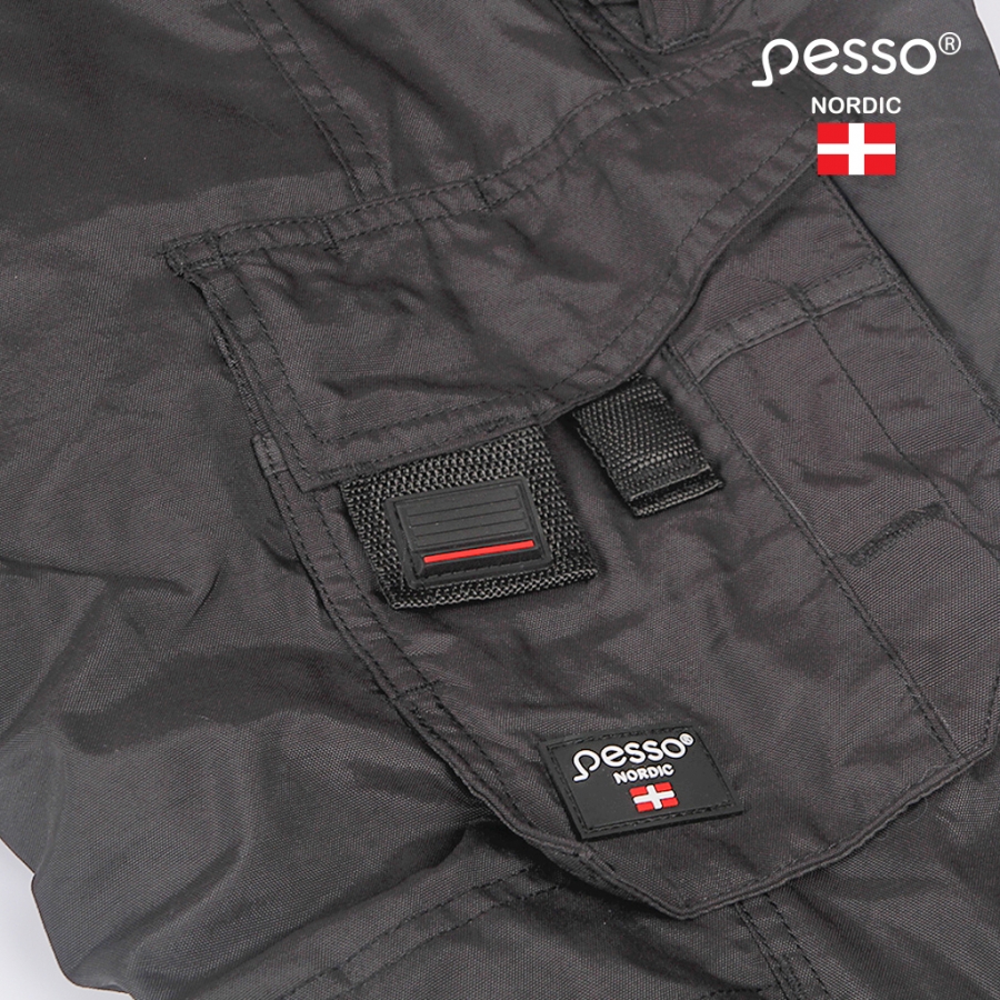 Šiltos darbo kelnės Pesso SKIPPER išsiskiria savo tvirtumu bei yra labai patogios ir šiltos. Tvirtas aukštos kokybės nailono audinys neperpučiamas, gerai atstumia drėgmę, tačiau yra „kvėpuojantis” ir užtikrina puikų komfortą. Kelnės pasiūtos su sintepono sluoksnio pašiltinimu, todėl tinka dėvėti net šaltu oru. Praktiškos ir funkcionalios dvi priekinės kišenės, dvi užpakalinės kišenės bei skirtingų dydžių klešnių kišėnės ir įmautės, kad būtų patogu įsidėti reikalingas darbo priemones. Judėjimo komfortą užtikrina tampri juosmens sritis, reguliuojama lipdukais ir su Fleece audinio pamušalu. Kelnės turi specialiai išmodeliuotą išorinę namatomą kišenę antkeliams užsegamas lipdukais bei atšvaitines juostas kelnių apačioje.