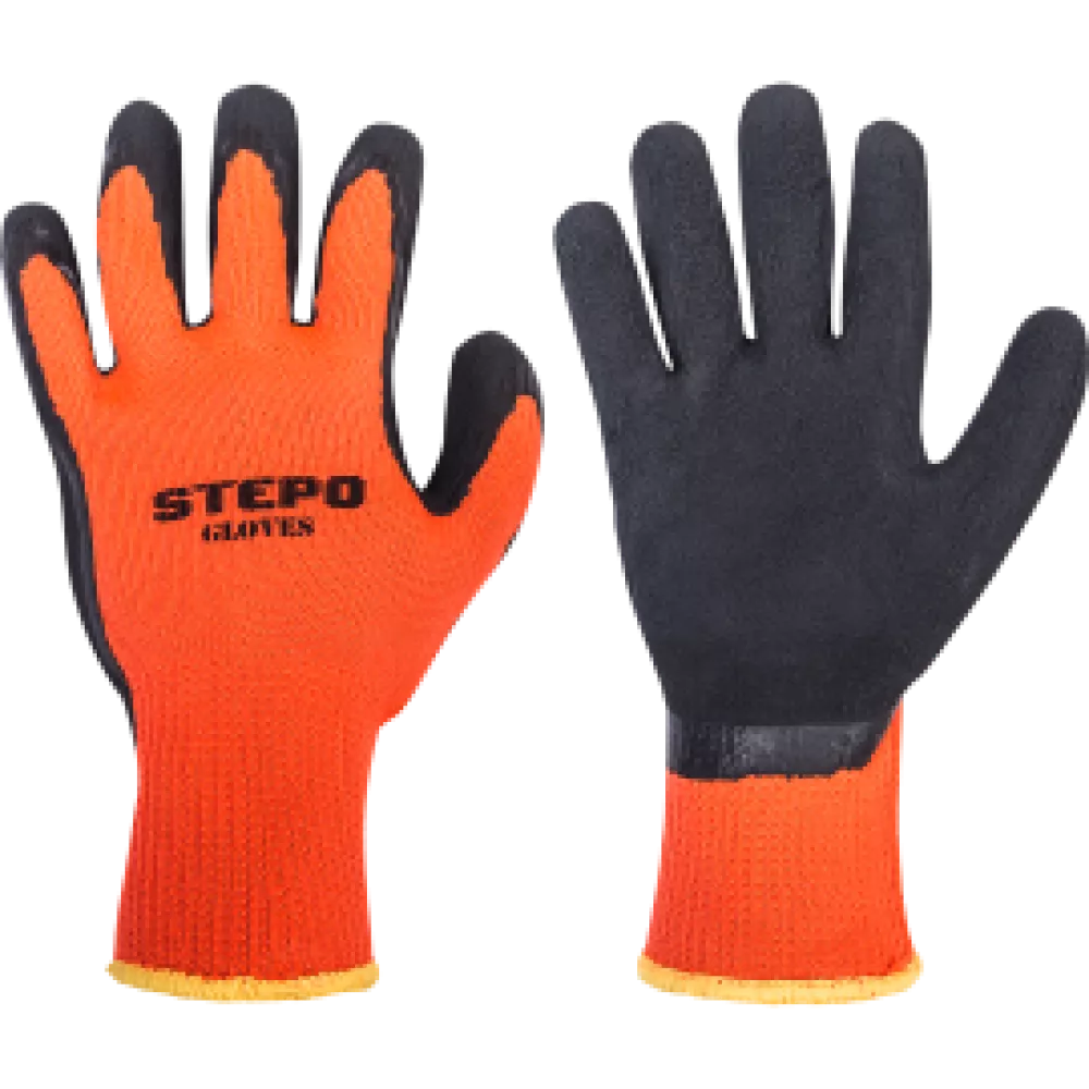 Šiltos darbo pirštinės STEPO ESKIMO yra sukurtos užtikrinti komfortą ir efektyvumą šaltomis sąlygomis. Šios žieminės pirštinės yra pagamintos iš megzto akrilinio audinio ir padengtos minkštu porėtu latekso sluoksniu, garantuojančiu puikų sukibimą ir lankstumą net esant žemai temperatūrai. Pirštinių viršus pagamintas iš poliesterio su pūkeliu, oranžinės spalvos, užtikrinantis matomumą ir efektyvumą bei papildomą šilumą. Delno sritis aplietas minkštu porėtu lateksu, kuris užtikrina gerą sukibimą su įvairiais paviršiais. Pirštinės išlaiko lankstumą net ir esant žemoms temperatūroms, suteikiant komfortą ir patogumą darbo metu. STEPO ESKIMO pirštinės yra idealus pasirinkimas žiemai, kai reikalingas papildomas šilumos ir saugumo lygis, užtikrinant darbo efektyvumą ir rankų apsaugą.