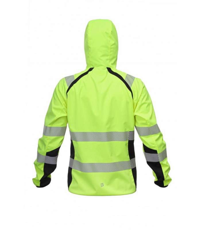 Softshell audinio džemperis yra lengvas, minkštas ir gerai kvėpuojantis. Puikiai apsaugo nuo vėjo, trumpalaikio lietaus. Su kapišonu. Turi dvi talpias kišenes juosmens srityje ir vieną kišenę ant krūtinės, kurios yra patogiai užsegamos užtrauktuku. Vidinėje pusėje esantis tinkliukas užtikrina gerą oro cirkuliaciją. Džemepris yra su reglano rankovėmis. Geram matomumui juosmens srityje bei ant pečių yra 5 cm klijuotos segmentinės atšvaito juostos. Džemperis turi elastinius rankogalius ir elastinę švarkelio apačią dėl ko puikiai tinka dėvėti tiek darbe, tiek laisvalaikiu ar kur reikia būti gerai matomam.