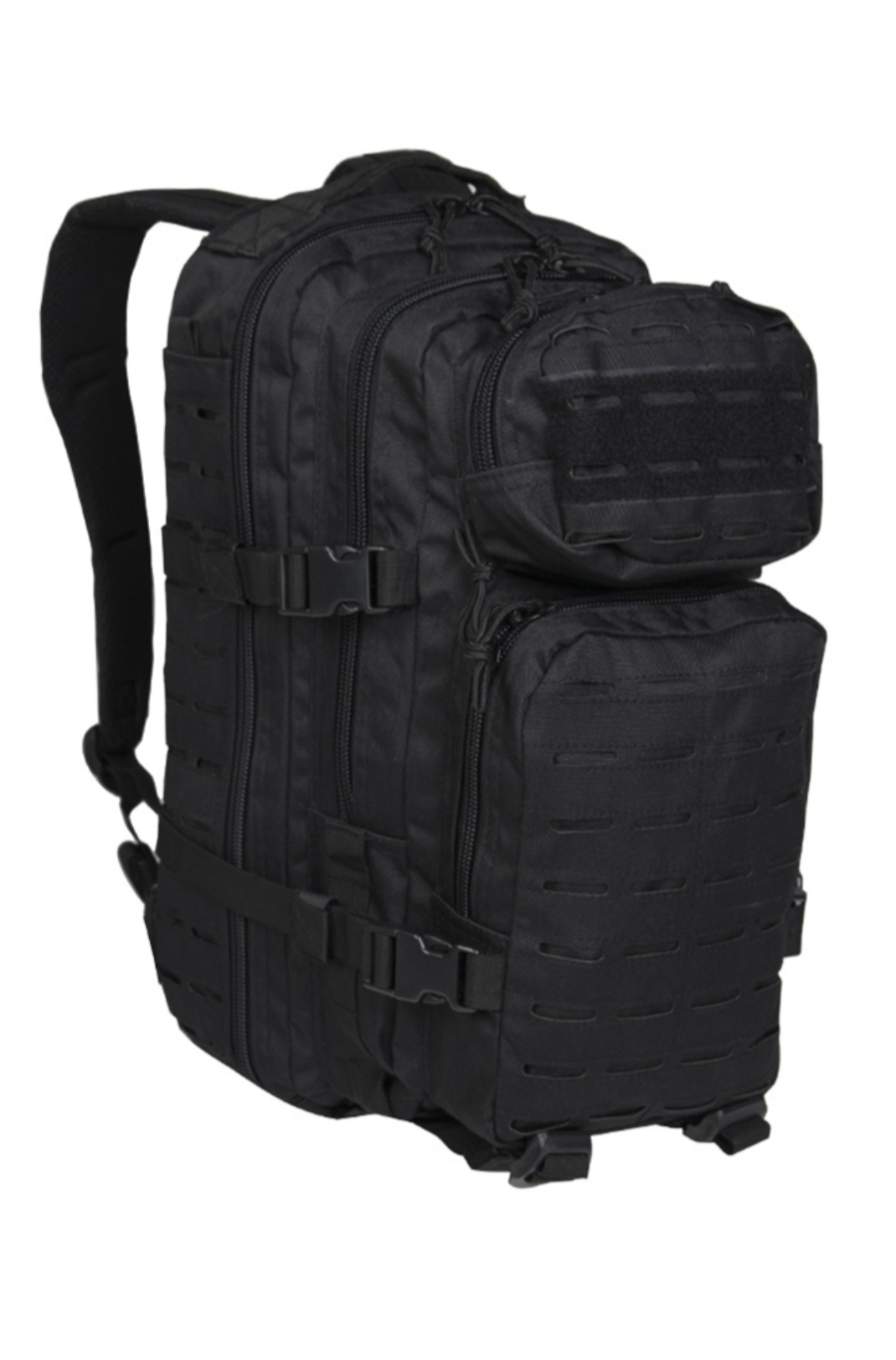 Taktinė 20 l talpos kuprinė Laser Cut Assault – tai patobulinta Assault versija, kuri yra dar patvaresnė ir patikimesnė dėl panaudotos audinio pjovimo lazeriu technologijos. Speciali lazeriu iškirpta kuprinės kilpų sistema užtikrina greitesnį ir lengvesnį įrangos fiksavimą. Kuprinė pasižymi ergonominėmis savybėmis: reguliuojamos petnešėlės, juosmens diržas ir paminkštinta nugara leidžia taisyklingai ir patogiai nešti kuprinę.