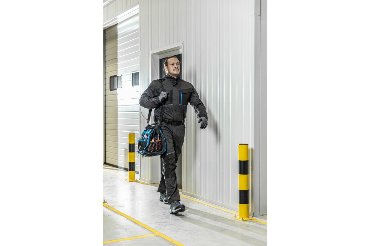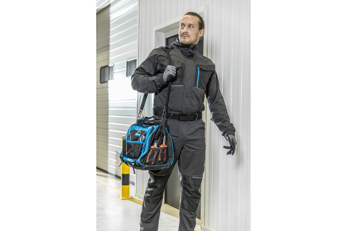 Elektrikams-profesionalams skirtas krepšys pagamintas iš patvaraus 600D poliesterio. Kompaktiško dizaino sprendimas profesionalams, norintiems, kad įrankiai ir priedai visada būtų po ranka. Krepšys sukurtas daug dėmesio skiriant funkcionalumui ir ilgalaikiam patvarumui, šis krepšys buvo sukurtas taip, kad atitiktų aukštus pramonės standartus, siekiant užtikrinti kad būtų ne tik lengva pasiekti įrankius bet ir užtikrinta išskirtinė apsauga.